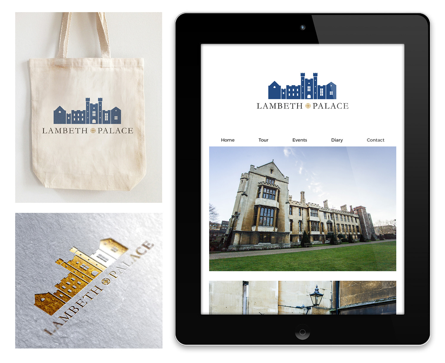 The official residence of the Archbishop of Canterbury were looking to rebrand. Until recently the Palace was indistinct from the brand of the Archbishop. They made the decision to create a brand that was uniquely for the commercial arm of Lambeth. The brief was for a logo to focus on the Palace itself carrying something of its tradition, status and history.